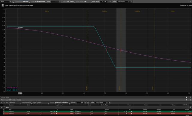 The spread I’m looking at is the June 2018 155/145 bear put spread, costing $ 4.20 to make $ 5.80, or a 138% return on capital. The position is a play on a minor pullback to its major trend line. Remember that it is possible to lose all of your premium in the options strategy, and thus the position must be weighted appropriately.
